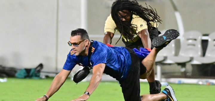 Un guardia de seguridad intervino durante el partido Juventus-Real Madrid.