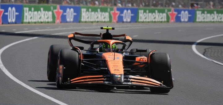 Detrás del piloto de McLaren, Max Verstappen. Accidente para Alexander Albon.