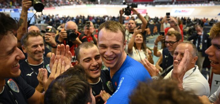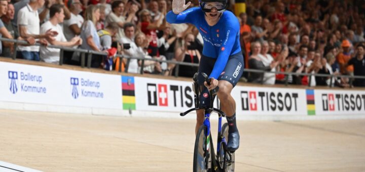 La felicidad del friulano de 24 años tras la medalla de oro y el récord mundial en la persecución individual en Dinamarca.