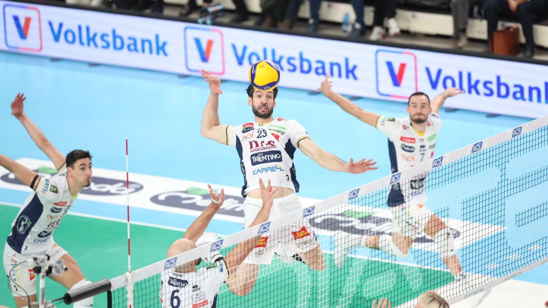 El Sir Susa Scai Perugia llega a Trento con un plantel envidiable a sus espaldas en esta primera parte del campeonato; la derrota en casa en el tie break contra el Verona el fin de semana anterior no les hizo perder su primer puesto en la clasificación, una posición que vale mucho habiéndose enfrentado ya a cuatro de los cinco primeros perseguidores en la clasificación (además de los Scaligeri, también Módena, Civitanova y Piacenza). Las estadísticas de este inicio de campeonato certifican la bondad de la supremacía de los Diablos del Bloque, que se encuentran entre los más incisivos en la fase de break point gracias a la pared (60 ganadores – 2,07 por parcial, nadie lo hace mejor) y al saque (1,41 ace por fracción). Con respecto a la temporada pasada, el equipo no ha variado un ápice su alineación titular, pero ha reforzado la nómina con más incorporaciones de valor como el joven director Argilagos (ya protagonista en las victorias ante Piacenza y Cuneo), el central Crosato, el opuesto croata Cvanciger, el líbero Gaggini y el universal Džavoronok (47 partidos con el Trento en la temporada 2022/23), que engrosarán aún más la alineación de exjugadores, liderada por el técnico Angelo Lorenzetti (337 apariciones en el banquillo gialloblù entre 2016 y 2023) y compuesta también por Simone Giannelli (315 partidos oficiales entre 2014 y 2021 y 131 veces capitán), Sebastian Solé (189 fichas entre 2013 y 2017) y Massimo Colaci (345 entre 2010 y 2017).