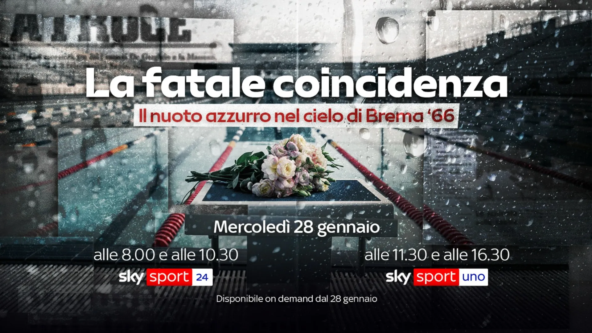 Para conmemorar el 60 aniversario de la tragedia aérea de Bremen, en la que perdió la vida todo el equipo nacional italiano de natación, con el entrenador Paolo Costoli y el periodista Nico Sapio, Sky Sport presenta la nueva producción original ‘La fatale coincidenza. Il nuoto azzurro nel cielo di Brema ’66’.