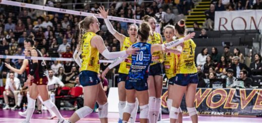 Punto a punto inicial, el ace de Loser’favorecido por la red da a Allianz Milano su primera ventaja: 3-4, el argentino repite en el siguiente saque con Scanferla no manteniendo la pelota en su campo. La respuesta del Piacenza no se hizo esperar con Recine desde nueve metros para el 5-5. Una pared de Gas Sales Bluenergy y el brazo caliente de Lucarelli pusieron el 8-7. El primer intercambio largo se cerró con un ataque fuera de Recine 9-9, Loser exaltado por una pared sobre Romanò dos veces 9-11. Piacenza detiene la rotación y Anastasi detiene el juego por primera vez en 10-13. Allianz Milano mantiene +3 en las siguientes tres rotaciones 13-16 con un Dirlic sobre el balón. El ace de Brizard, Piazza lo saca, pero el control de vídeo no puede utilizarse en el primer set debido a un problema técnico, se llega al 15-16. El empate de los emilianos llega en el 19-19 con un ataque fuera de Dirlic. Una vez más, el control no pudo ser convocado debido a un toque de pared, y Piazza detuvo el juego. A la vuelta, el equipo de Anastasi se adelantó 20-19. Doble cambio del Allianz con saque de Zonta y Reggers en el puesto cuatro con 21-21. Anastasi pone a Gironi al saque sobre Caneschi, pero sigue empatado 22-22. Rice y ataque de Simon 23-22, sale Mergarejo y entra Ishiwawa. Punto de set del Piacenza al saque de Lucarelli 24-23 y Piazza para con el segundo minuto disponible. La pared de Milán toca la red y Gas Sales Bluenergy cierra 25-23 en 28’. El ataque de Piacenza con un 60% de bolas de punto frente al 39% de Milán cava el surco decisivo de un largo parcial equilibrado.
