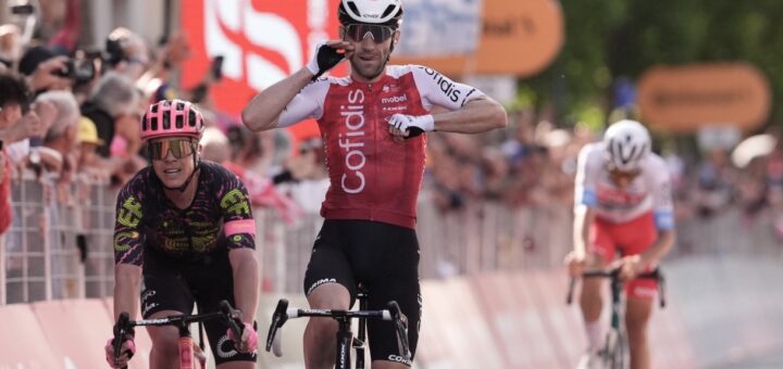 Sprinters sorprendidos en el final de etapa por cuatro hombres y victoria para el francés del Cofidis. Pogacar sigue con la maglia rosa.