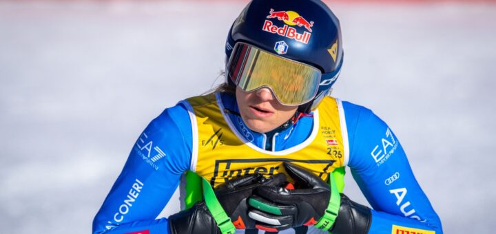 En la tercera y última contrarreloj de descenso, la esquiadora del Valle de Aosta terminó cuarta, a sólo 46 centésimas de la líder, Ester Ledecka.