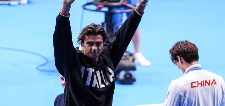 El italiano, ya plusmarquista mundial de la especialidad, aventaja al chino Xu Jiayu y al estadounidense Ryan Murphy.