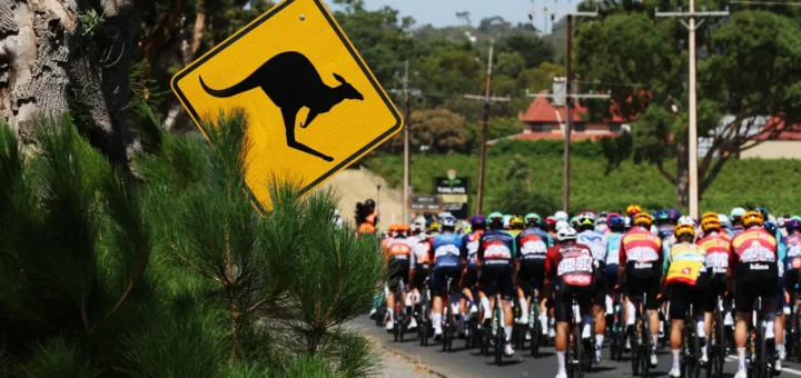 Pánico en el Tour Down Under: un canguro derriba a unos ciclistas
